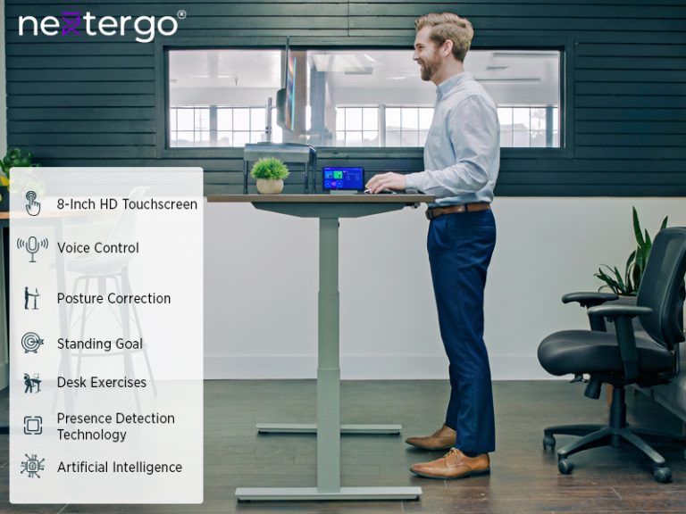 NextErgo is a renowned company that offers smart standing desks for employees and those who work on desks for long hours. These desks has posture correction feature, and its 8-inch HD touchscreen shows you visual details about many things, including your health, exercises, and more.
